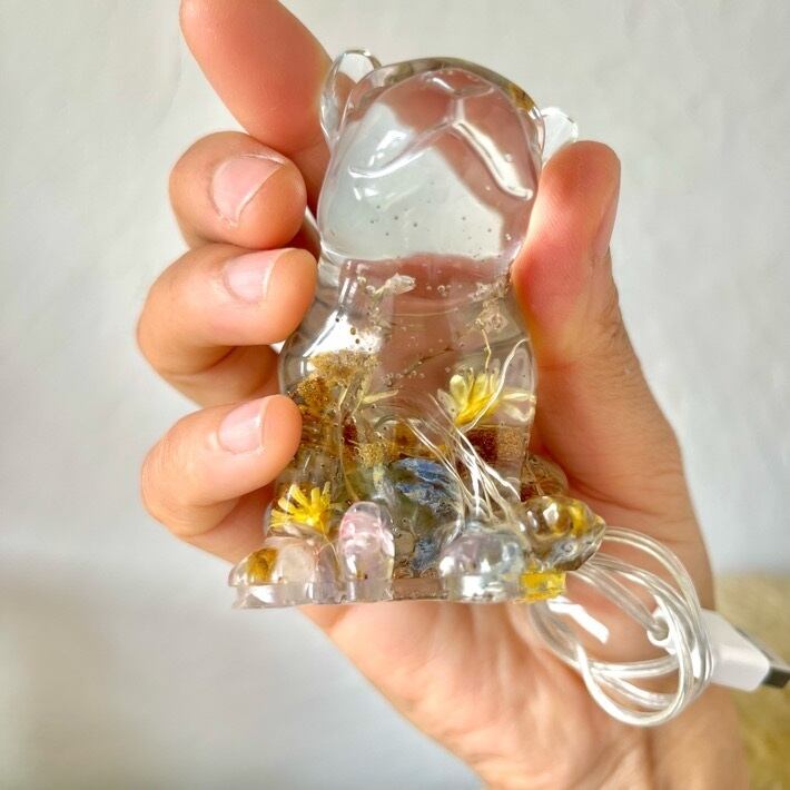 *使用しているお花や制作過程の都合上、底面が平(ツルツル)ではなく、かなりザラザラだったり、少し凹んだ感じの子がいます。底面が写っている画像をご参考ください。